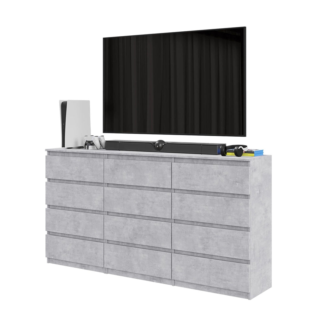 GABRIEL - Cómoda de 12 cajones (8+4) - Armario de almacenamiento para dormitorio - Aparador - Hormigón